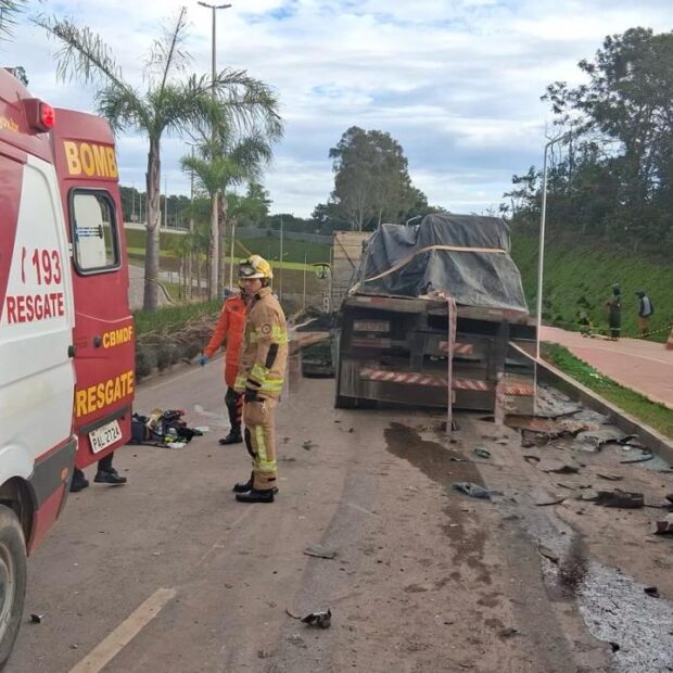 Na manhã desta sexta-feira (30), um acidente ocorreu no Condomínio Village Alvorada II, no Lago Sul, envolvendo um caminhão e um carro. O Corpo de Bombeiros Militar do Distrito Federal foi acionado às 6h42 e enviou quatro viaturas para o local.