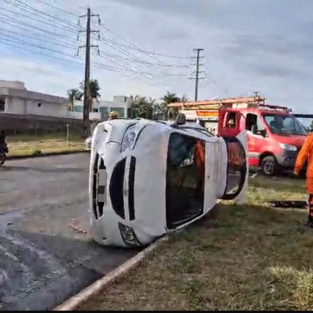 Na cena do acidente, estavam um Fiat Pálio vermelho, um GM Celta preto, um VW Golf branco e um GM Onix branco, que virou após o choque.