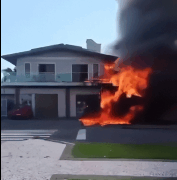 O acidente causou incêndio no prédio e em casas vizinhas. Os bombeiros continuam controlando o fogo.