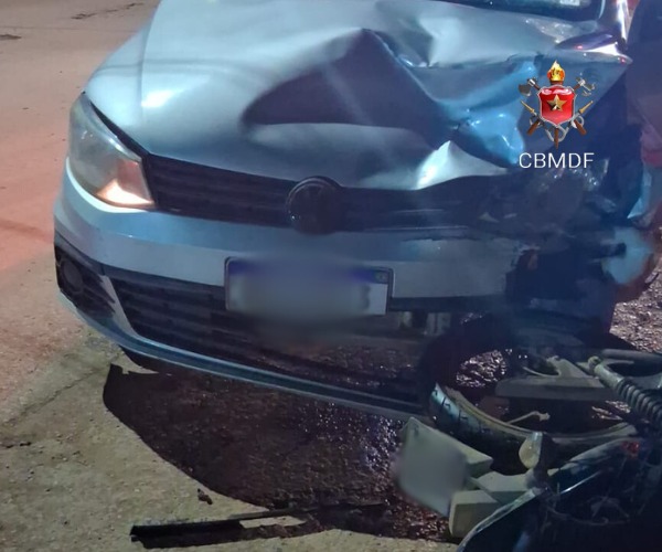 Uma batida frontal entre um carro e uma moto aconteceu no Residencial do Bosque, em São Sebastião, na noite de quarta-feira (10) por volta das 22h12. Duas viaturas do Corpo de Bombeiros Militar do Distrito Federal foram acionadas e foram até a Rua 27 para atender ao chamado.