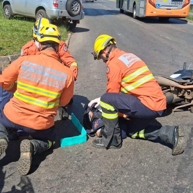 Após a avaliação, a vítima consciente e orientada foi levada para um hospital de referência, apresentando um corte leve no pé esquerdo. Para o atendimento, foi necessário interditar o retorno da via, afetando o trânsito na região.