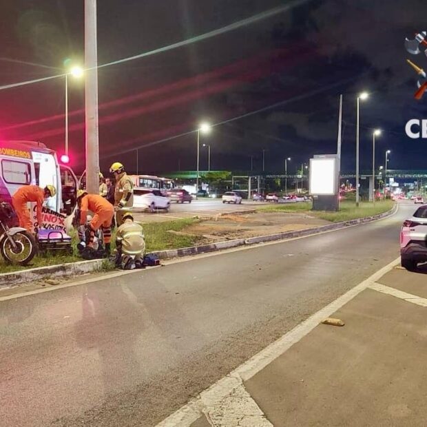 O Corpo de Bombeiros Militar do Distrito Federal (CBMDF) foi acionado e enviou duas viaturas para socorrer os envolvidos. No local, os agentes encontraram um veículo VW Tera prata e uma motocicleta Honda CG 150 Titan cinza, ambos parados na via marginal.