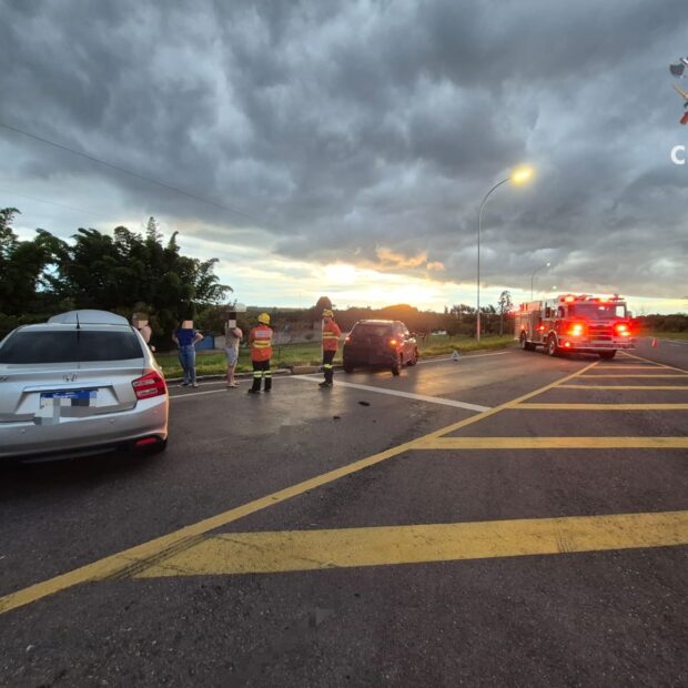 No local, foram encontrados um Honda City prata e um Citroën C3 preto que colidiram. O motorista do Honda City recebeu atendimento imediato seguindo o protocolo de acidentes com trauma. Após avaliação médica, ele foi encaminhado consciente e orientado para um hospital da região.