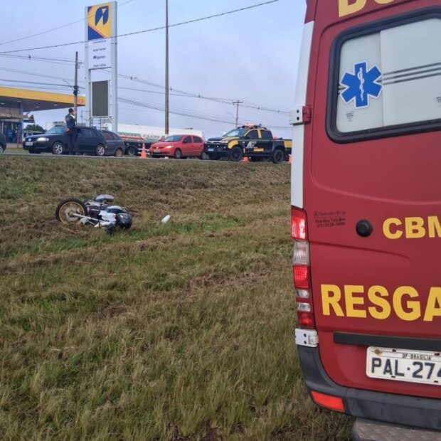 O acidente ocorreu no km 6 da rodovia, próximo a um posto de combustível na M. Norte, envolvendo uma moto Honda CB branca e um carro Fiat Fiorino preto. Ao chegarem no local, os socorristas encontraram o motociclista acordado e consciente, com ferimentos leves.