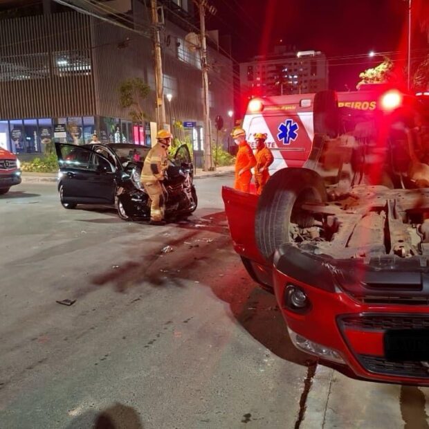 Um acidente de carro mobilizou o Corpo de Bombeiros do Distrito Federal na noite de quinta-feira, 9, na Avenida Flamboyant, em Águas Claras. Por volta das 21h25, perto da lanchonete Madero, um veículo capotou depois de uma colisão envolvendo dois carros, um vermelho e outro preto, no cruzamento da via.