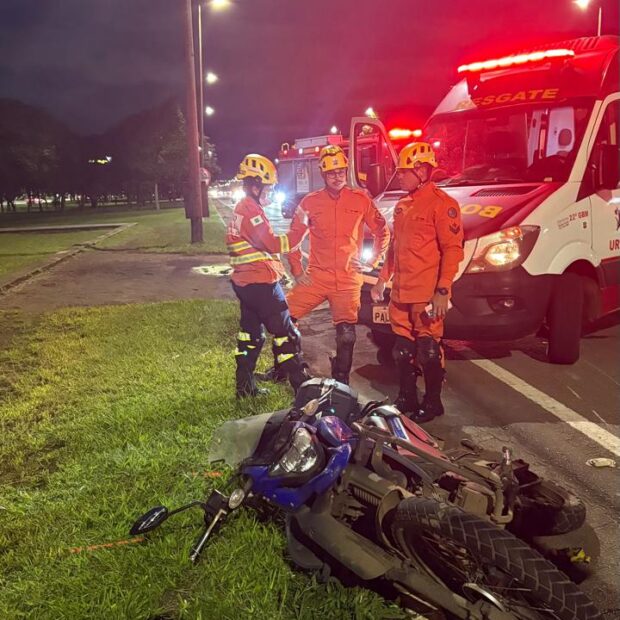 Ao chegarem ao local, os socorristas encontraram a vítima no chão, atingida por uma motocicleta Yamaha XTX250 azul. Para garantir a segurança durante o atendimento, parte da via foi isolada.