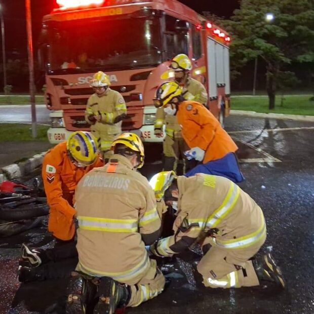 Os socorristas encontraram o motoqueiro consciente e alerta, mas com ferimentos que precisaram de avaliação rápida. Seguindo os procedimentos de emergência, a equipe estabilizou o ferido e o levou ao hospital apropriado. O motorista do Ford Ka não teve ferimentos graves e não precisou de atendimento médico.