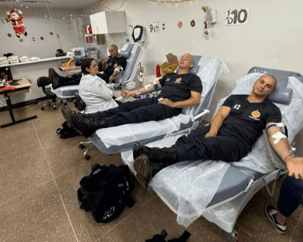 Pela manhã, os 39 alunos participaram voluntariamente da doação de sangue no Hemocentro de Brasília, contribuindo com 36 bolsas para ajudar a manter o estoque de sangue durante o fim do ano, em apoio à Semana do Doador.