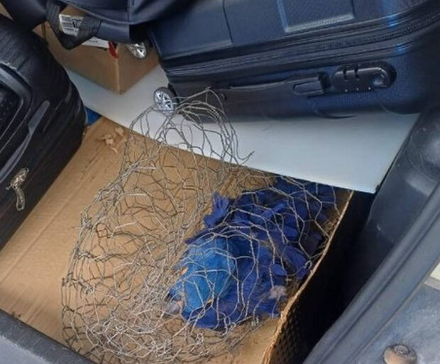 Dentro do porta-malas, os agentes encontraram a arara azul amarrada com arame, sem condições apropriadas para transporte e sem autorização ambiental. Apesar do resgate rápido, a ave não resistiu aos ferimentos graves e morreu após ser levada ao Ibama.