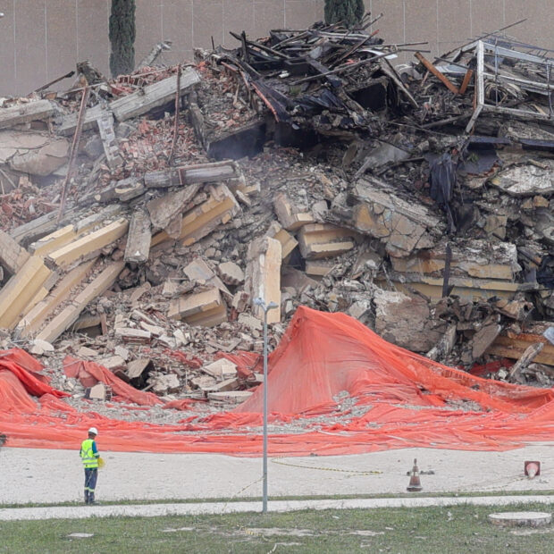 Para derrubar o prédio, foram usados cerca de 165 quilos de explosivos, colocados de forma estratégica nos andares térreo, 1º, 2º, 3º e 7º. No total, aproximadamente 600 metros de pilares foram perfurados para garantir a queda controlada do edifício.