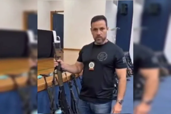 No vídeo, Domingos comentou: “O CFAE [Coordenadoria de Fiscalização de Armas e Explosivos da Polícia Civil] está avaliando os fuzis apreendidos, que depois serão enviados para perícia”.