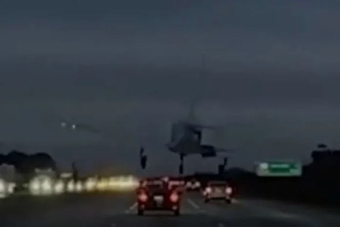 Vídeos compartilhados em redes sociais capturaram o momento em que o avião aterrissou na rodovia enquanto o carro estava em movimento.