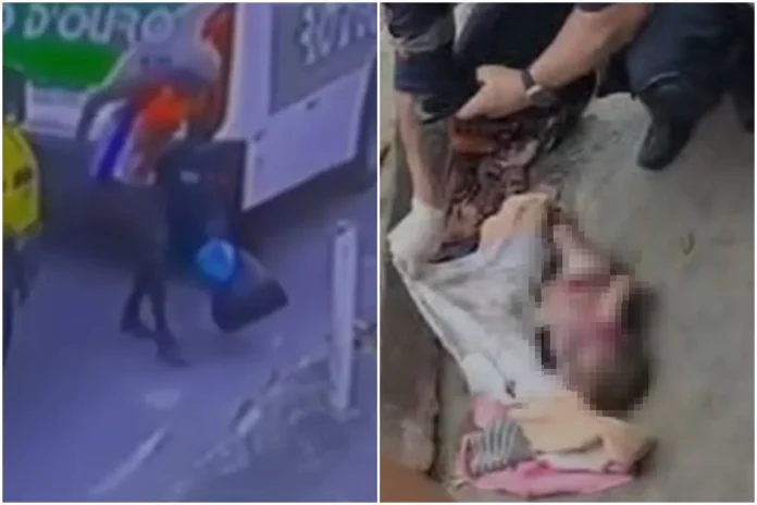 Nas imagens, o homem atravessa a rua carregando o saco preto, passa entre os carros e abandona o pacote próximo à calçada, próximo a outros sacos de lixo já existentes no local. Passantes seguem seu caminho normalmente até que alguém suspeita do que está dentro da sacola.