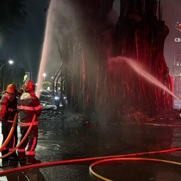 O Corpo de Bombeiros Militar do Distrito Federal agiu na noite do domingo, 12 de outubro de 2025, por volta das 20h04, para apagar um incêndio em uma árvore localizada na SCRN 704/705, Bloco B, na região do Plano Piloto.
