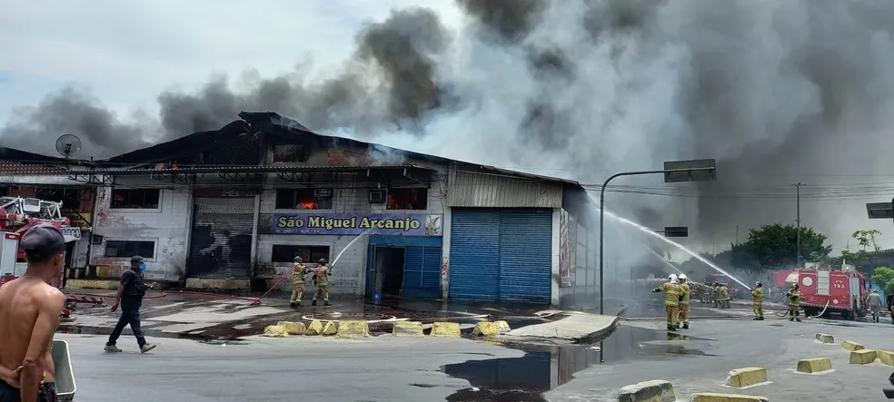 Bombeiros combatem incêndio na Ceasa; houve saques e tiros para o alto