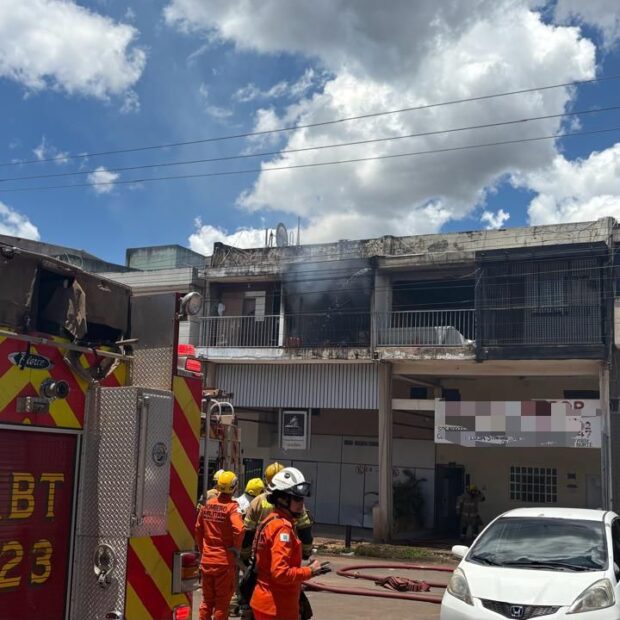 O fogo começou na SCRN 714/715, Bloco F, Entrada 43, perto do Bar Jamburita. Quando os bombeiros chegaram, havia muita fumaça saindo do apartamento.