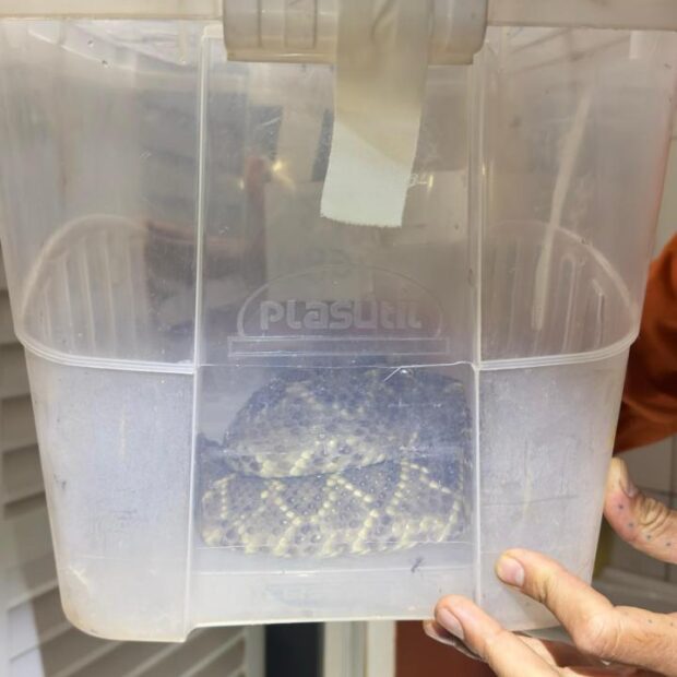 Depois da captura, a cascavel foi levada para o Hospital e Centro de Reabilitação da Fauna Silvestre do Distrito Federal para passar por avaliação veterinária e receber cuidados adequados.