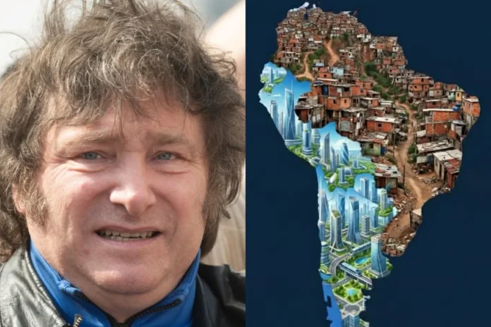 O perfil no Instagram do presidente da Argentina, Javier Milei, foi tomado por comentários em português após o líder ultraliberal publicar, na segunda-feira (15/12), uma ilustração que mostra a Argentina como futurista e o Brasil como uma grande favela.