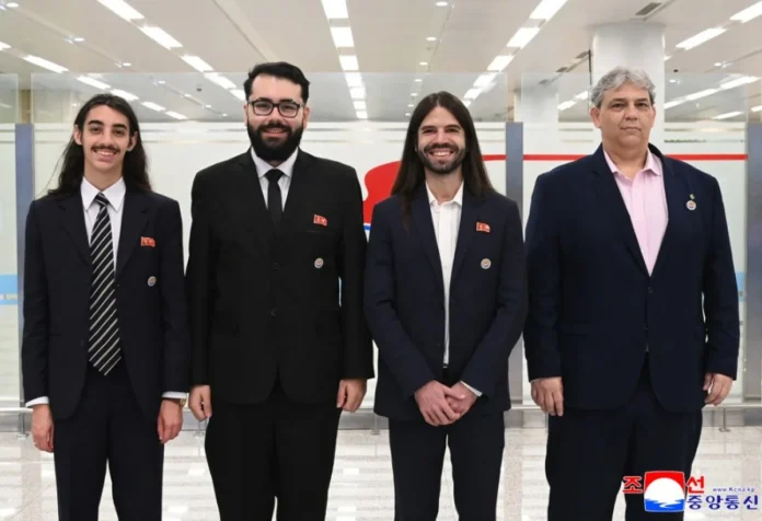 A delegação brasileira, composta por cinco pessoas, chegou ao país na última terça-feira (7/10). Eles representam o Instituto Paektu, uma organização brasileira dedicada ao estudo da Coreia do Norte, governada por Kim.