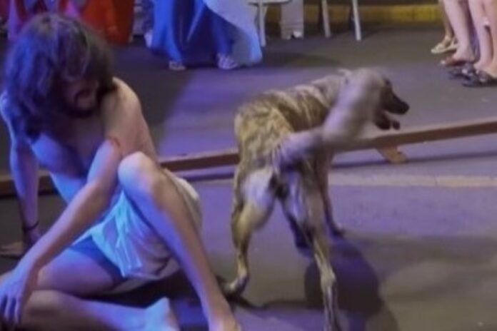 A encenação aconteceu no sábado, 28 de março, na cidade de Sapiranga, região metropolitana de Porto Alegre. Durante o evento, o animal entrou no palco e permaneceu ao lado do ator no momento em que ele sofria castigos. A cadela não se afastou mesmo com a movimentação dos participantes, acompanhando toda a apresentação.