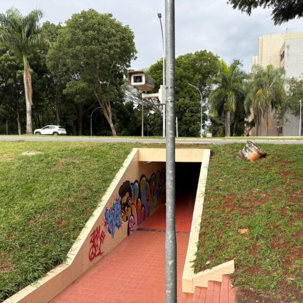 São quatro câmeras, duas voltadas para o Eixo W e duas para o Eixo L. Outras 12 câmeras já estão instaladas na Asa Sul, mas ainda não ligadas. Atualmente, quatro passagens subterrâneas são monitoradas neste projeto inicial.