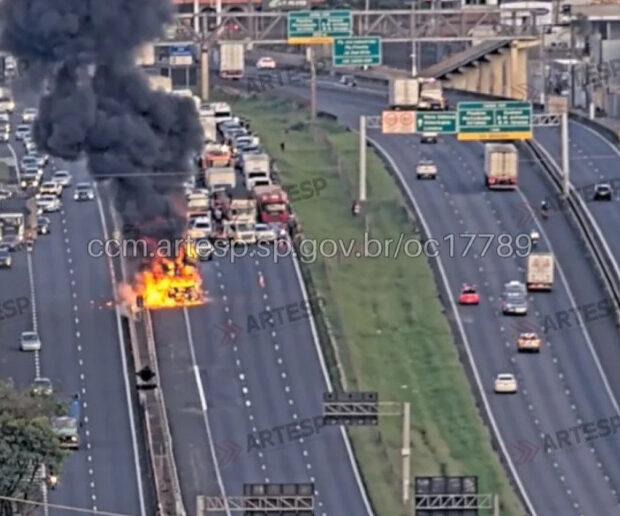 Durante a madrugada desta quarta-feira (7/1), um caminhão pegou fogo no km 107 da Rodovia Anhanguera, em Sumaré, interior de São Paulo, devido a um vazamento de diesel.