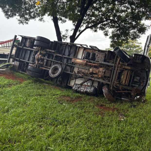No local, os militares encontraram um caminhão que havia virado no canteiro lateral da via.