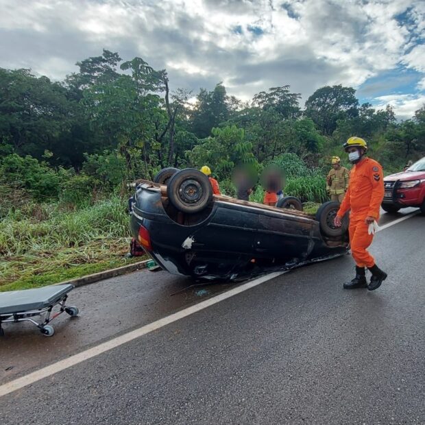 Ao chegar ao local, as equipes encontraram um Fiat Palio cinza que havia virado e estava de cabeça para baixo. Por causa do acidente, uma parte da rodovia precisou ser fechada temporariamente.