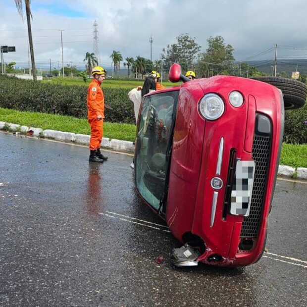Ao chegar ao local, as equipes encontraram um carro Fiat 500, vermelho, virado na via. A motorista foi examinada pelos bombeiros, estava consciente, orientada e sem ferimentos, não precisando ir ao hospital.