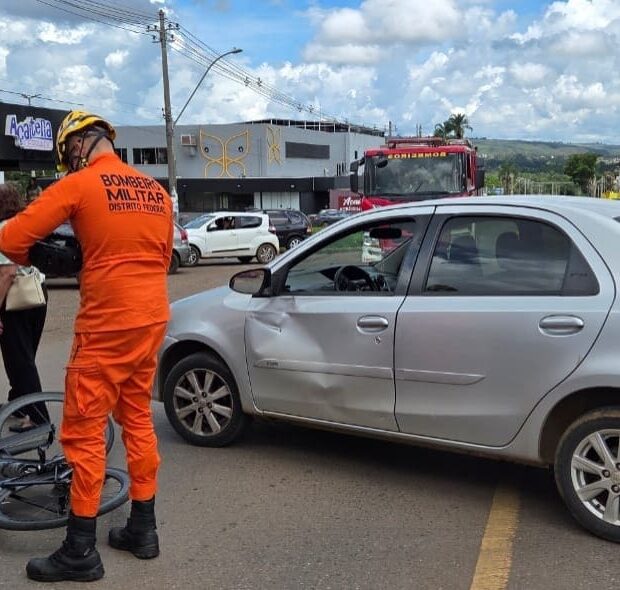 O Corpo de Bombeiros Militar do Distrito Federal foi chamado às 10h54 e enviou duas equipes de resgate ao local. O ciclista, um jovem que estava pedalando, foi atingido por um Toyota Etios prata.