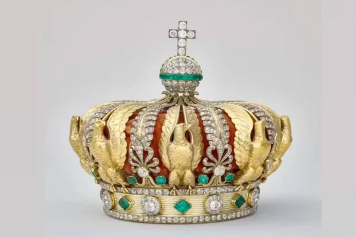 Trata-se de uma coroa feita com diamantes, que pertencia à imperatriz Eugênia, esposa de Napoleão III. A peça contém 1.354 diamantes e 56 esmeraldas e, segundo reportagens internacionais, foi encontrada com danos.
