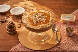 - Em uma taça para sobremesa, faça camadas alternadas de biscoito champanhe umedecido no leite, creme de cupuaçu e geleia.