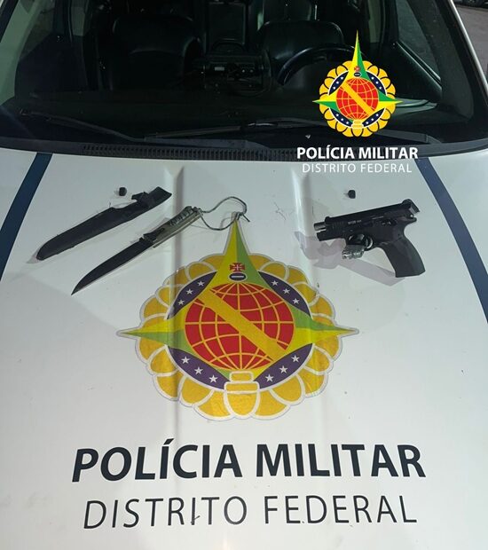Com eles, foram apreendidos um simulacro de arma de fogo e duas facas, que foram usadas para amedrontar a vítima.