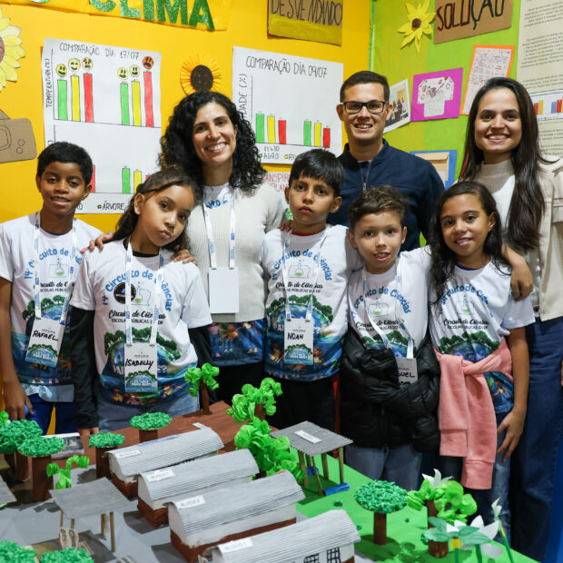 A Escola Classe 303 de Samambaia apresentou o projeto Detetives do Clima, desenvolvido a partir da observação dos próprios alunos do 4º ano sobre diferenças de temperatura entre a sala de aula e áreas verdes. A professora Izabelly Sant’Ana explicou: “Peguei um termômetro emprestado e perguntei: ‘O que será que está acontecendo?’ Comparamos salas sem nada, com plantas ao lado e próximas a áreas verdes, explorando conceitos como umidade e clima.”