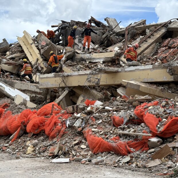 Logo após a demolição, o Corpo de Bombeiros iniciou um exercício de busca por corpos em meio aos escombros para aprimorar a capacitação da equipe. O primeiro-tenente Tiago Gonçalves explicou que cinco manequins foram posicionados dentro dos destroços com material que emite odor para que cães farejadores possam localizá-los.