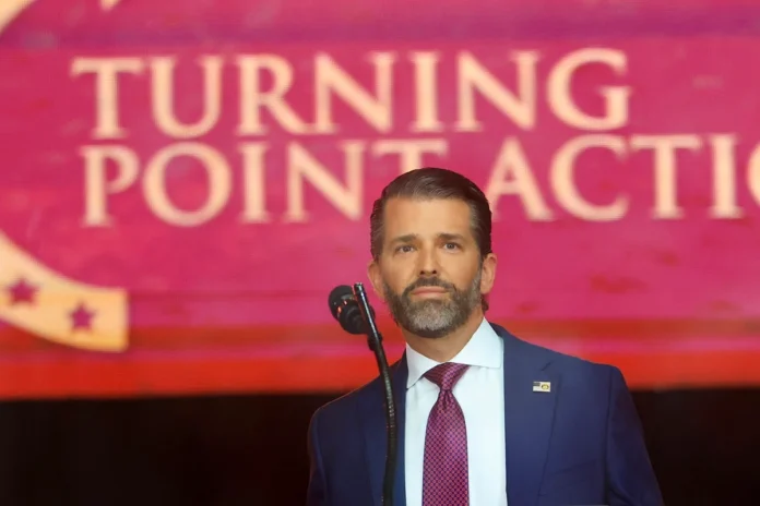 Donald Trump Jr. participou do evento em Doha para apresentar os planos da administração americana para investimentos em tecnologia de defesa e inteligência artificial. Apesar de não ocupar cargo oficial, ele é uma figura central no movimento político MAGA (Make America Great Again).