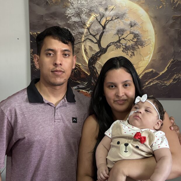 João Vitor dos Santos, 29 anos, e Larissa Freitas, 24 anos, têm enfrentado um período difícil desde o nascimento da filha, a pequena Helena Freitas, que tem oito meses e apresentou vários problemas de saúde após complicações no parto. Por causa dos cuidados necessários, João Vitor perdeu o emprego e precisou alugar um carro para trabalhar como motorista de aplicativo e sustentar a família. Larissa, por sua vez, dedica-se integralmente à filha e não conseguiu emprego.