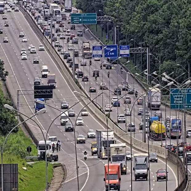 Outras rodovias também estão com tráfego intenso: na Raposo Tavares há cerca de 8 km de lentidão entre os km 26 e 34,1, enquanto o Rodoanel Mário Covas apresenta congestionamento no trecho Oeste (do km 26 ao 29,3) e também nos trechos Sul e Leste (entre os km 41 e 30, respectivamente).