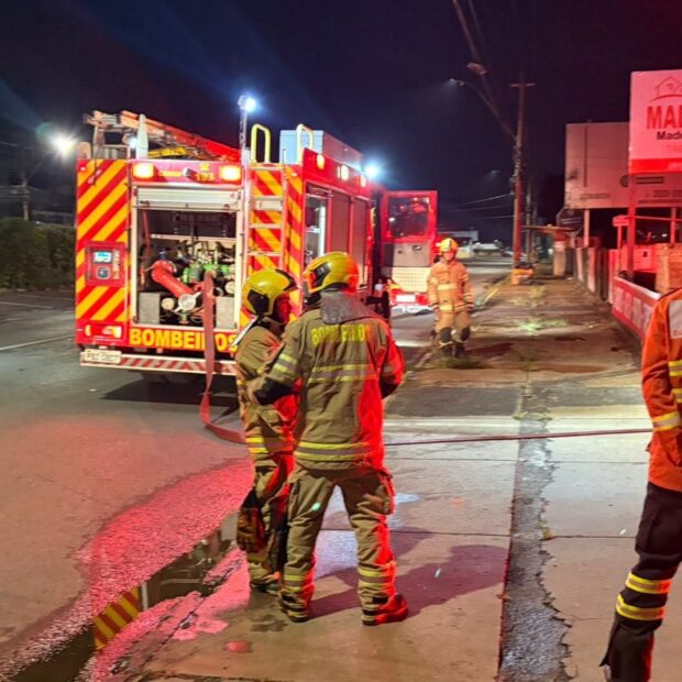 Ao chegarem ao local, os bombeiros encontraram muita fumaça dentro de uma madeireira. Dois carros que estavam no estabelecimento pegaram fogo.