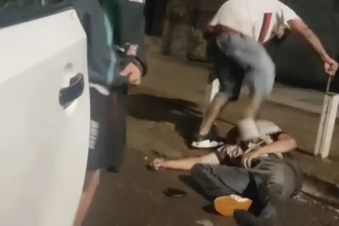 Um vídeo capturado por um motorista de aplicativo mostra os dois agressores pisando intensamente na vítima, que ficou desacordada no chão.