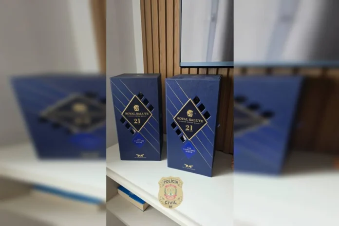 Durante a operação, os policiais apreenderam uma BMW X1 avaliada em mais de R$ 300 mil, várias garrafas de uísque Royal Salute, de aproximadamente R$ 1 mil cada, além de dinheiro em espécie.