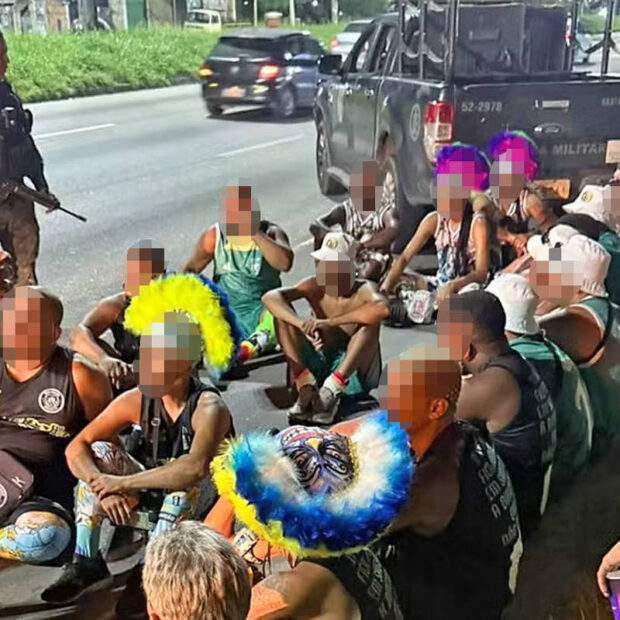 Na noite de segunda-feira (16), a polícia militar do Rio de Janeiro prendeu um grupo de 61 foliões vestidos como bate-bolas na Avenida Brasil, enquanto seguiam para o Complexo da Penha, zona norte da cidade.