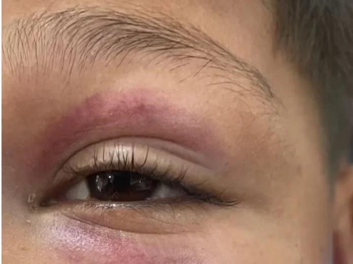 De acordo com a Polícia Civil, a vítima estava brincando na rua quando jogou um pedaço de manga que atingiu a namorada do agressor. Em resposta, o homem atacou a criança, desferindo um soco no rosto que deixou marcas visíveis no olho do menino.