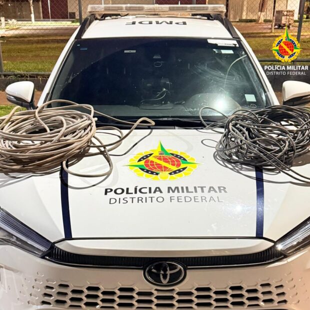 A Polícia Militar do Distrito Federal informou que ele já possui 13 registros anteriores na polícia. O suspeito foi abordado pela equipe da viatura 4596 enquanto estava com dois rolos de fios furtados.