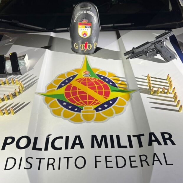 Policiais militares do 4º Batalhão (4º BPM) prenderam, na noite de segunda-feira (3), um homem de 42 anos acusado de agressão doméstica e posse ilegal de uma arma de fogo de uso restrito no Guará II.