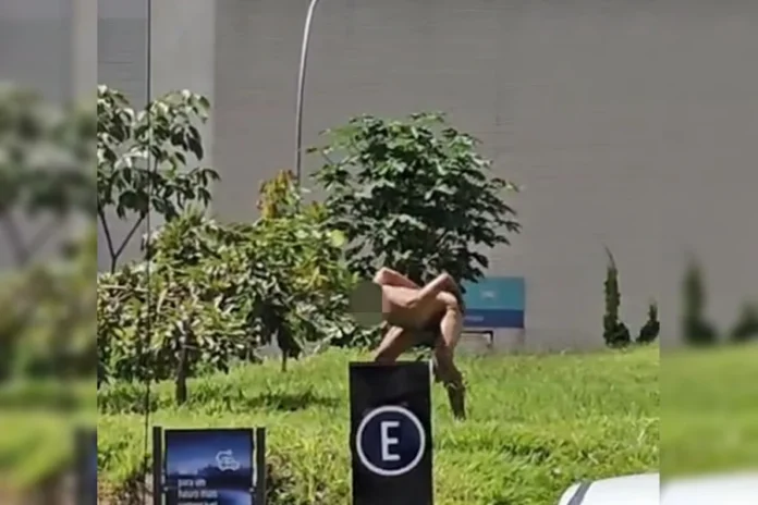 Imagens registram um homem que foi preso após caminhar sem roupas e portando uma faca em uma praça situada em Águas Claras, região administrativa do Distrito Federal. Conforme informações da Polícia Militar (PMDF), o indivíduo estava sob influência de entorpecentes.