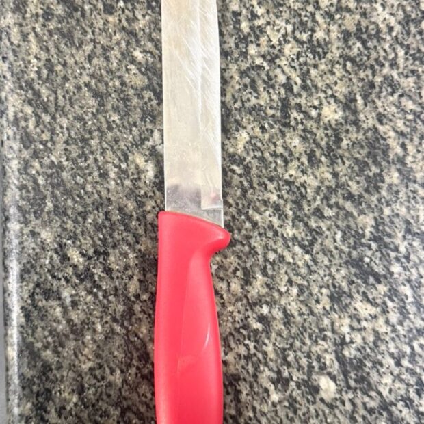 Quando os policiais chegaram, encontraram a vítima assustada. As crianças que estavam na casa confirmaram a ameaça e mostraram a faca usada pelo homem.
