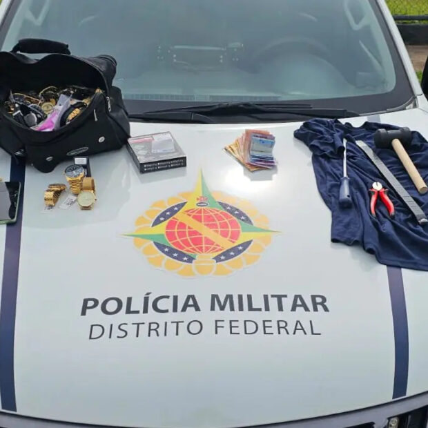 Na revista, os policiais acharam vários objetos roubados, como muitas semijoias, relógios de várias marcas, dinheiro, alianças de ouro e ferramentas que ele teria usado para o furto.