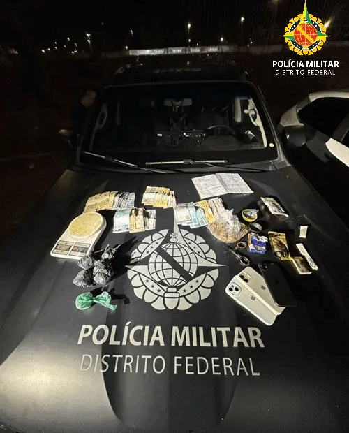 Segundo a PMDF, os policiais estavam em patrulha numa área conhecida pelo comércio de drogas quando notaram dois indivíduos com comportamento suspeito dentro de um carro.