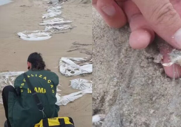Segundo o relatório do Ibama, a equipe constatou que muitos sacos plásticos foram levados pelo mar e estavam dispersos por diferentes áreas da praia, longe do local onde foram originalmente colocados.